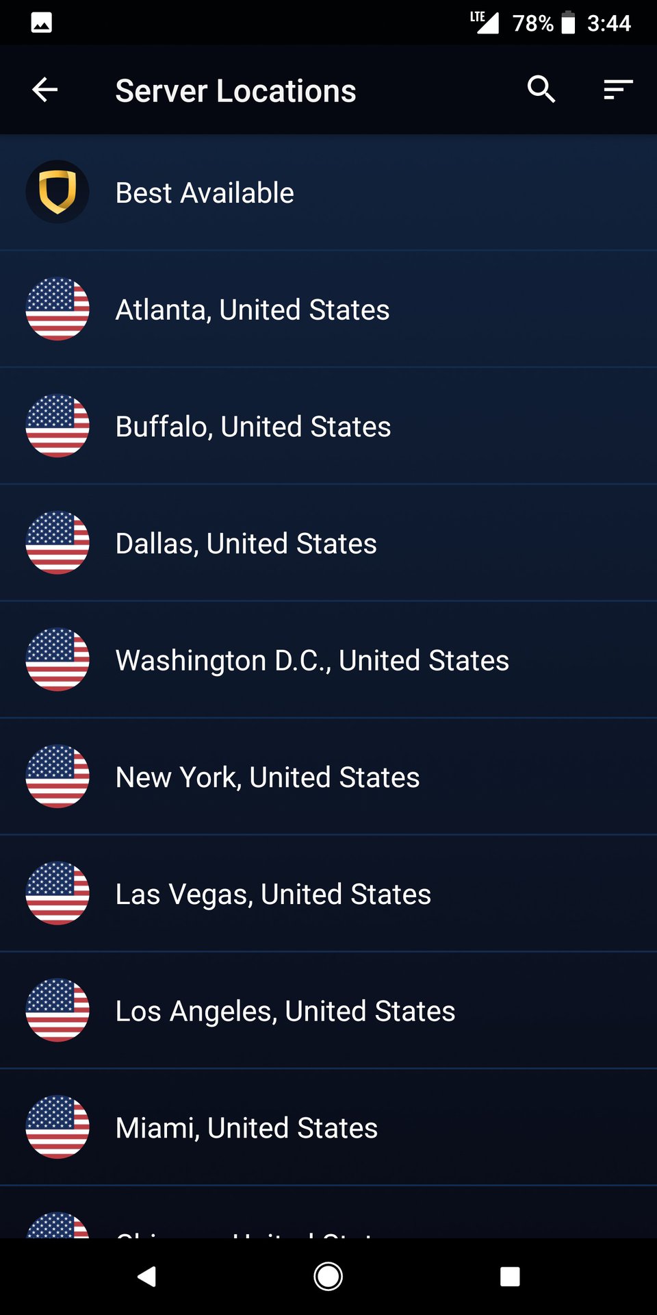 Like the Windows client, the Android app has received the same design overhaul. Both look identical, so there’s no learning curve involved with using the different apps. You get the same map, “Best Available Location” or server list button, and large connect button to get started.