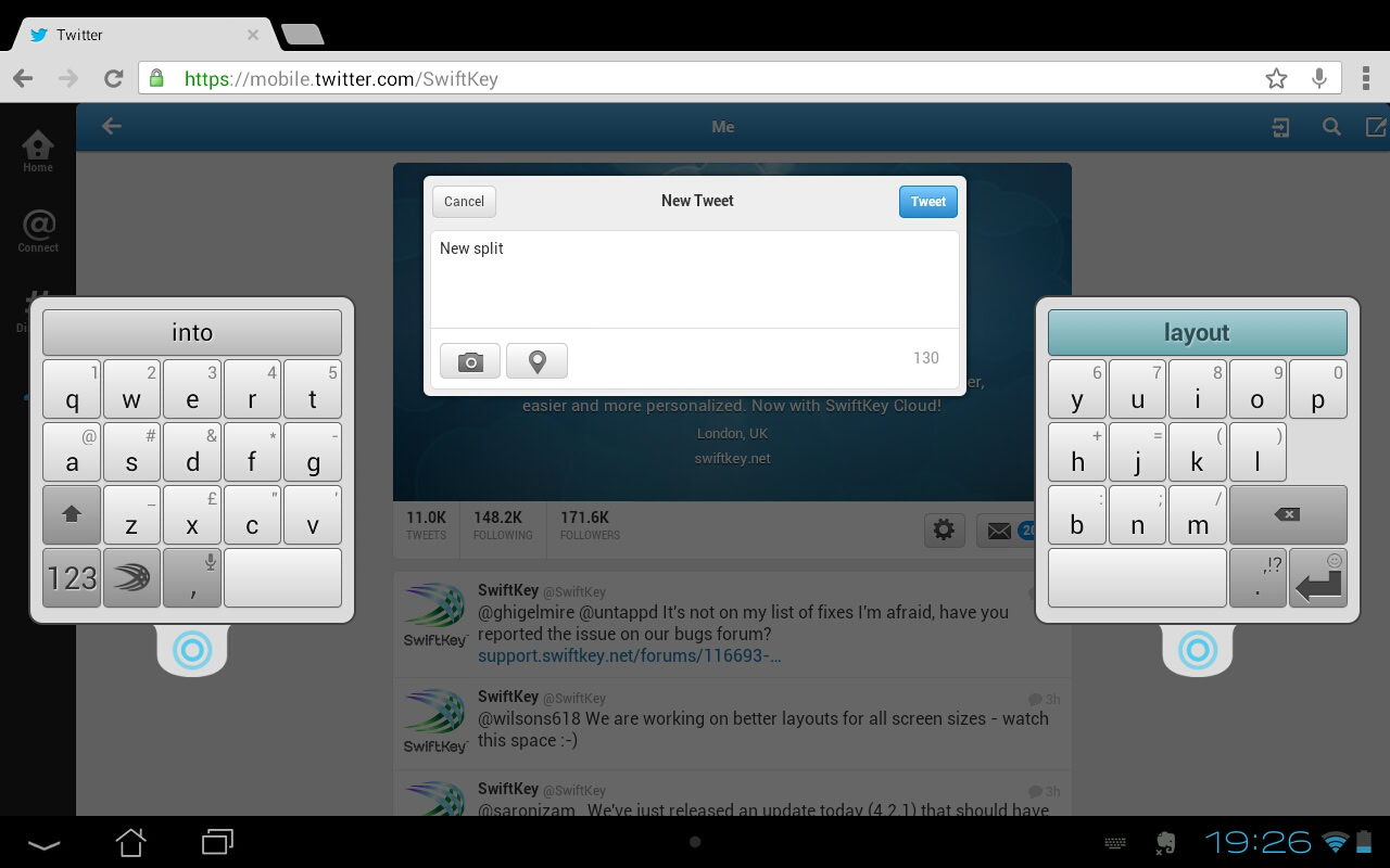 Through extensive user experience (UX) testing and feedback, SwiftKey recognized that an increasing lack of distinction between the phone and tablet form factor means users are demanding more flexibility when they type. For example, commuters in cramped trains may want to type one-handed with their left thumb, while a professional writing a document on a tablet may want to type with both thumbs. SwiftKey’s latest update aims to adapt to everyday situations such as these as well as any number of others – it’s up to each user. With Layouts for Living, SwiftKey liberates users with a huge variety of layouts.