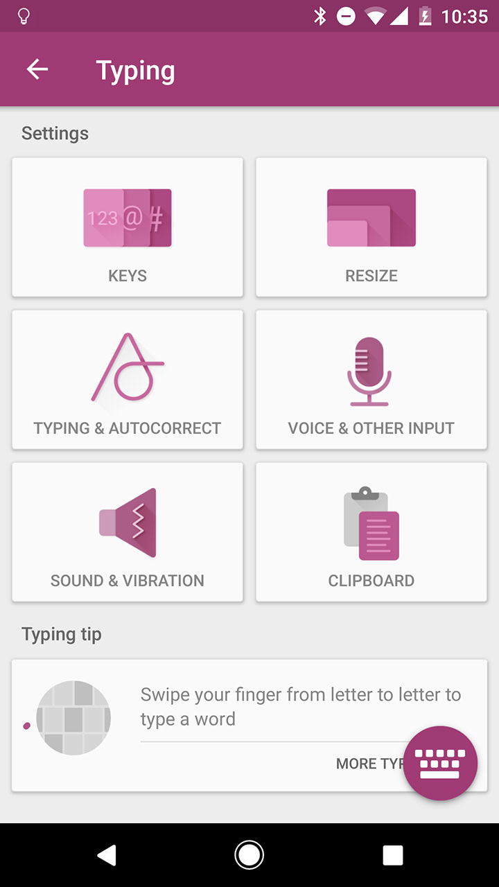 There are a total of four new keyboard sound profiles, each of which can be found in the Sound and Vibration section of the SwiftKey Hub. The four new sound profiles are Traditional, Android, Modern and Blip. Traditional sounds sort of like a typewriter, the Android profile mimics the standard Android keypress sound (sort of a “tick” sound), Modern sounds like a woodblock, and Blip sounds like a tiny electronic… blip. Sorry, I think I’m bad at describing keypress sounds.