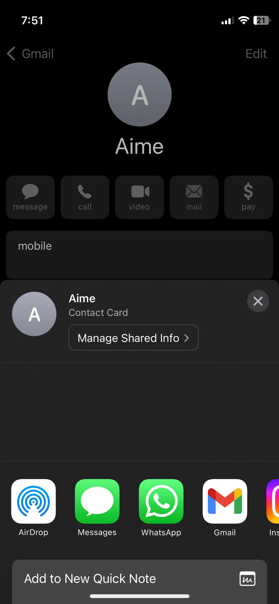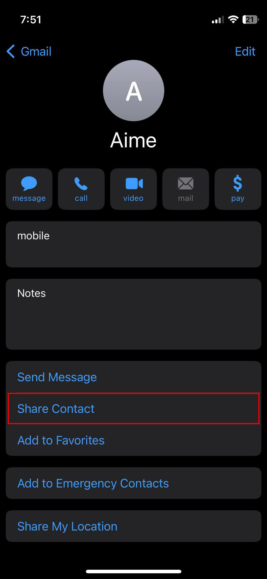 - Select Share Contact.