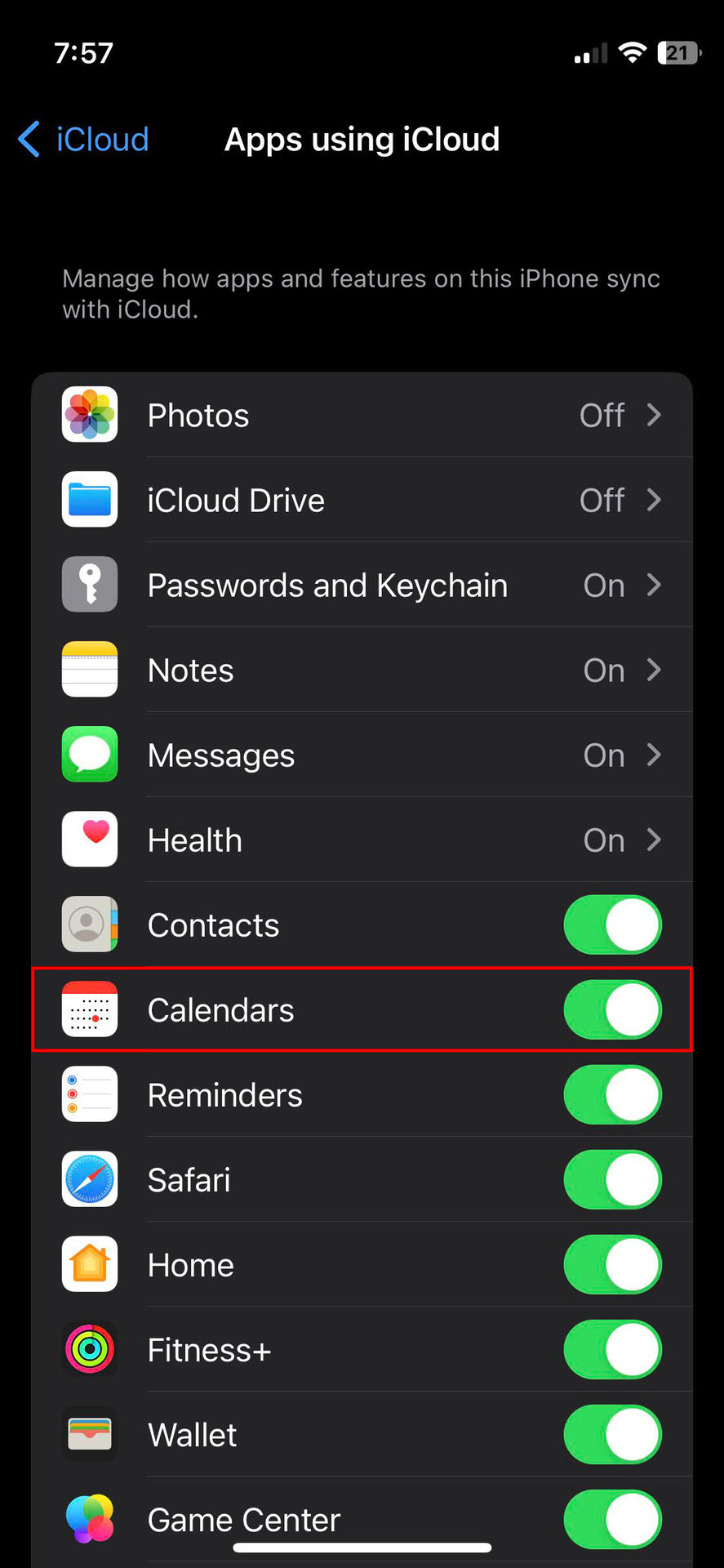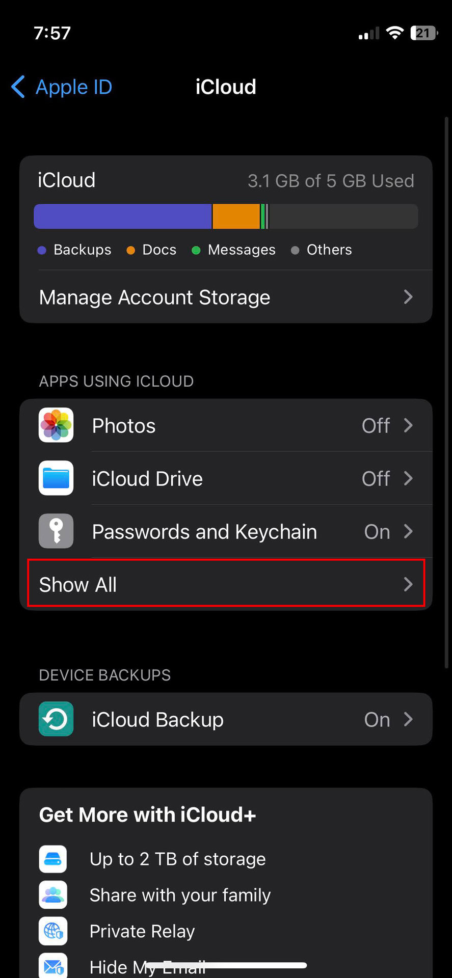 - Go back to the iCloud settings.