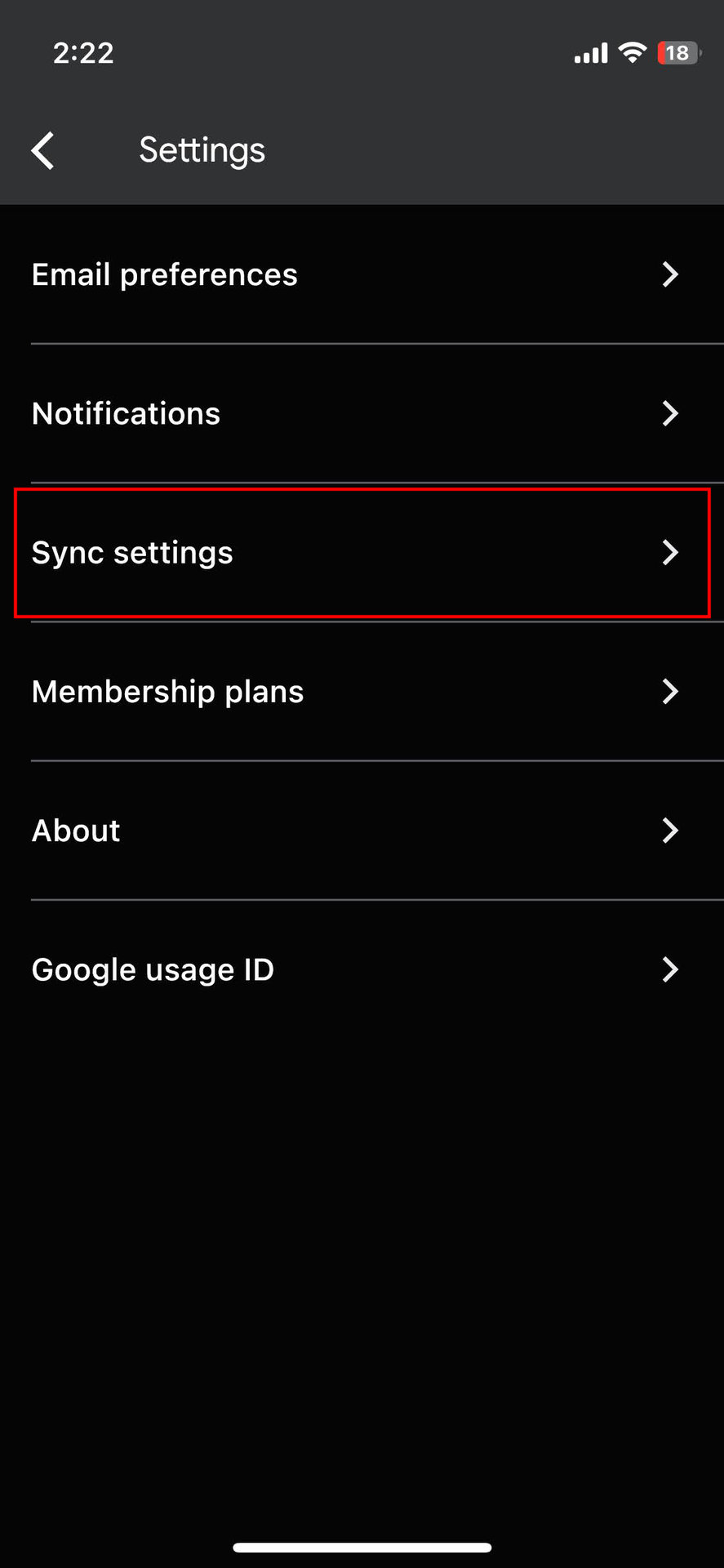 - Tap on Sync settings.