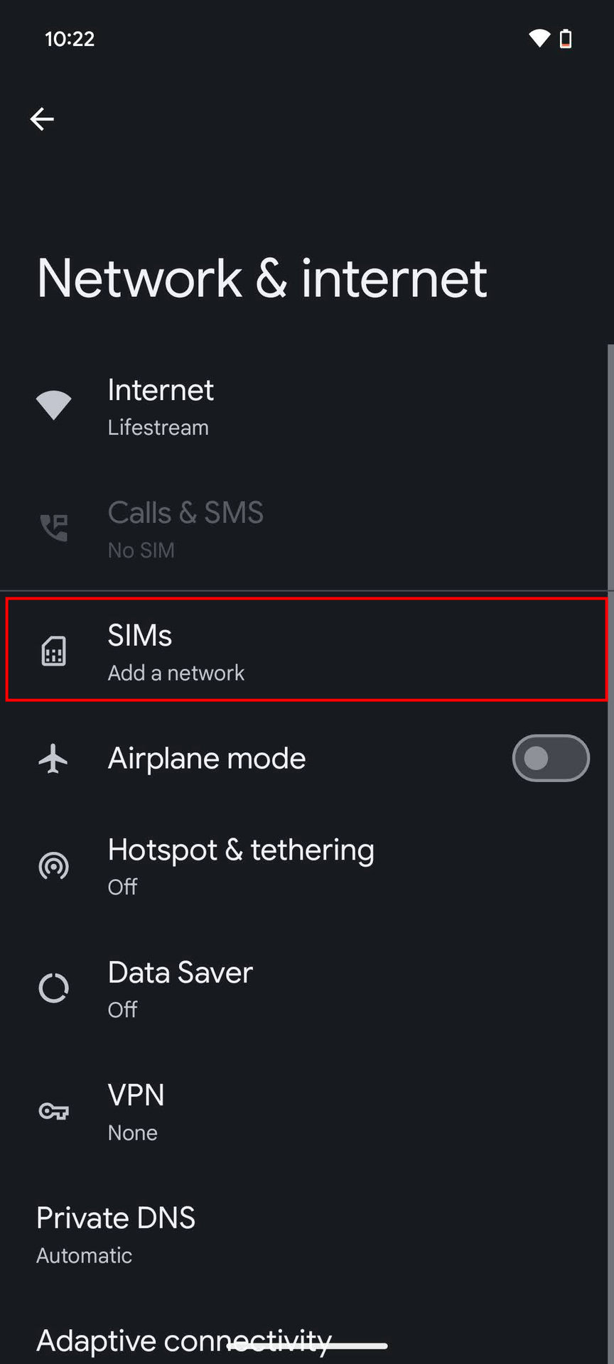 - Select SIMs.