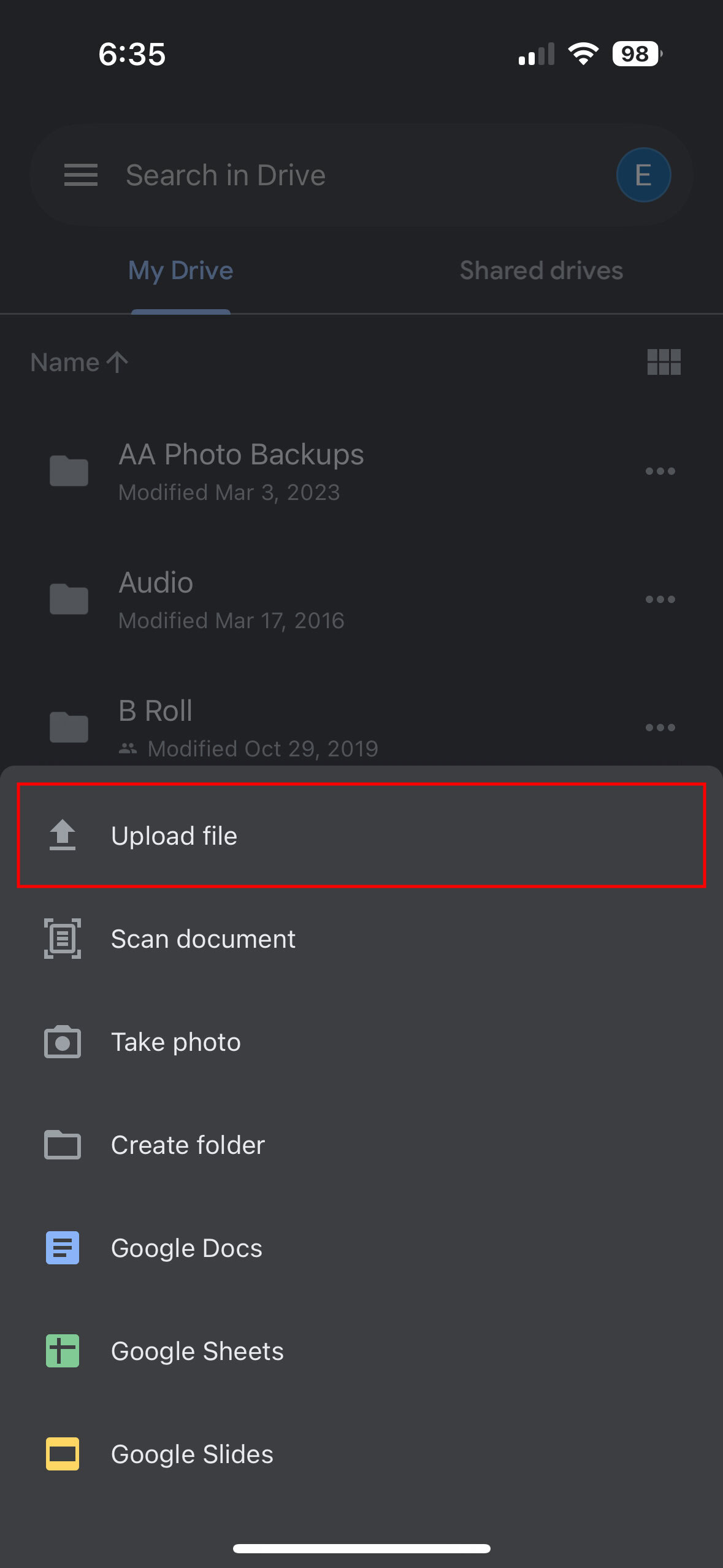 How to upload files to Google Drive on an iPhone: