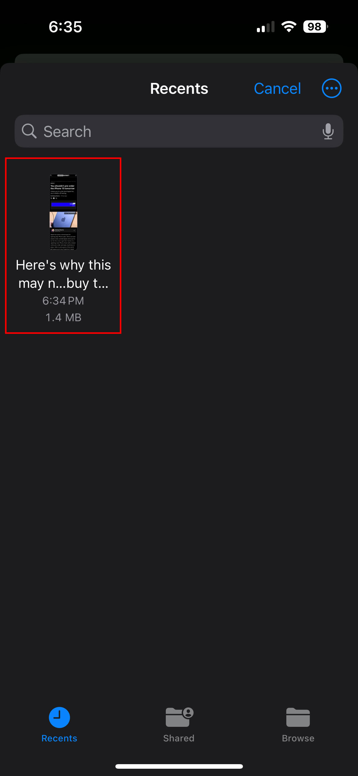 - Tap on the Share button in the top-right corner.