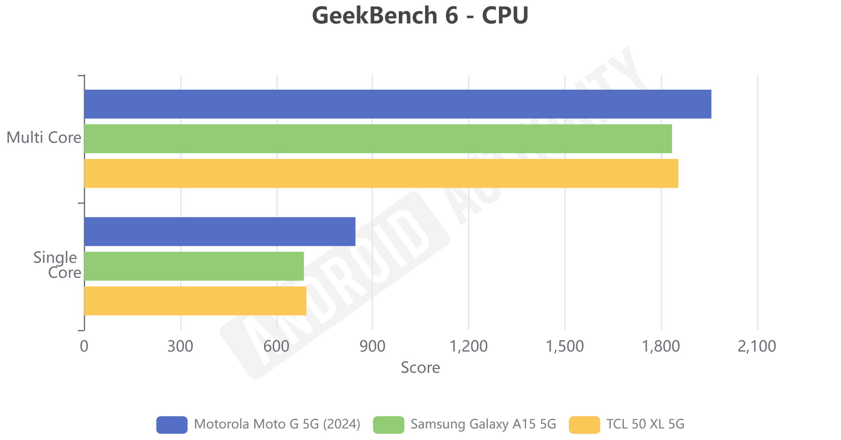 Inside the TCL 50 XL 5G, you’ll find the MediaTek Dimensity 6100 Plus chip, an octa-core processor also found in the similarly priced Galaxy A15 5G. As the benchmark numbers show, it’s very similar to the Snapdragon 4 Gen 1 found in the Moto G 5G (2024).