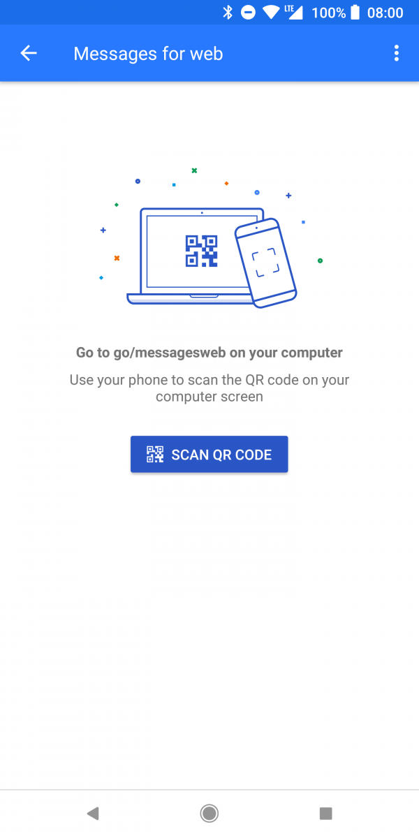 The way you’ll get started texting on desktop computers is to first create a QR code at messages.android.com (don’t bother going there, the page just 404s for now). Then, from within the Android Messages app, you’ll scan the QR code which will link your phone and your desktop.