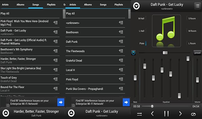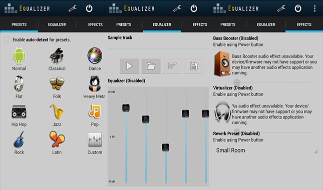 Many music player apps have equalizers built in. Some notable examples include UAPP (up to 10-band), jetAudio (up to 20-band), and Neutron Player (up to 60-band). These apps have effective equalizers that actually seem to change the sound. However, they only work within the app. Thus, those of you who stream music can’t use the equalizers in these apps for your streaming music. On the other hand, those with private collections can use these all day. Music player apps vary in price and functionality, but it’s almost impossible to find a bad one these days. We have listed USB Audio Player PRO below.