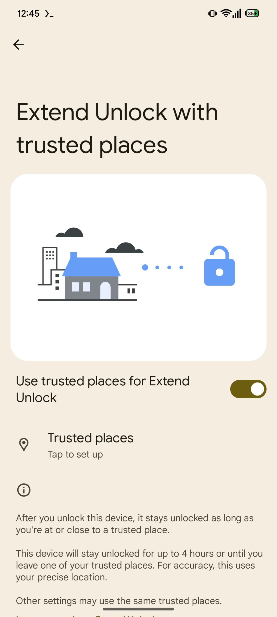 - Trusted places are getting a quick toggle to disable Extend Unlock.