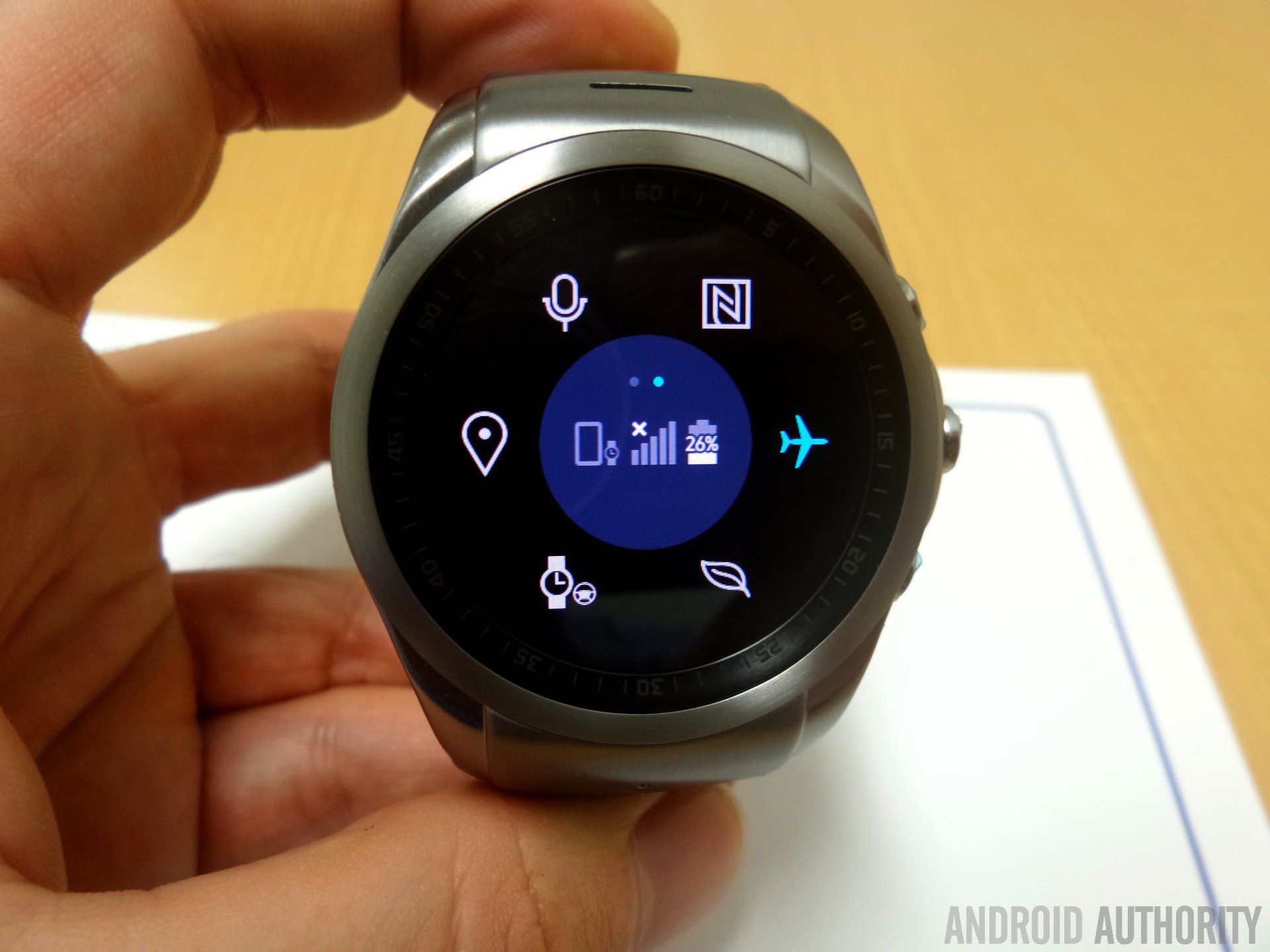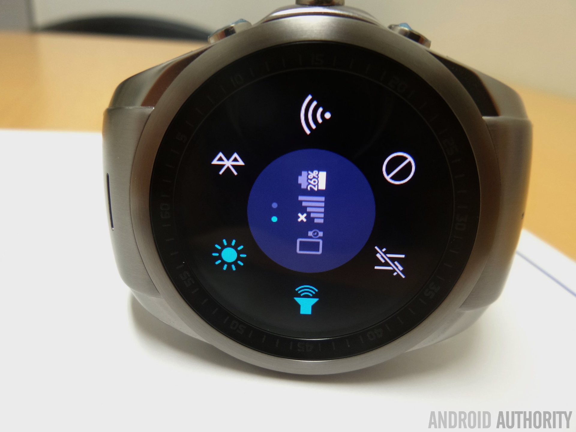 Another frustrating circular-shaped interface problem is setting the brightness. While touching the quick setting button will allow you to select from four preset levels, if you want to manually set the backlight level, it means touching the perimeter of the phone at the set percentage you want, with 12:01 representing the lowest setting and 12:00 representing 100%. This sounds fine on paper, but in practice it’s rather annoying because your finger is much larger than the tiny granular elements of the UI and thus precision is lost. In a very real way, the Urbane LTE is it’s own worst enemy, simply because the device uses a (small) circular screen, and because the bezel around the screen is elevated. The Samsung Gear S, for example, works much better, as does the Apple Watch for that matter.