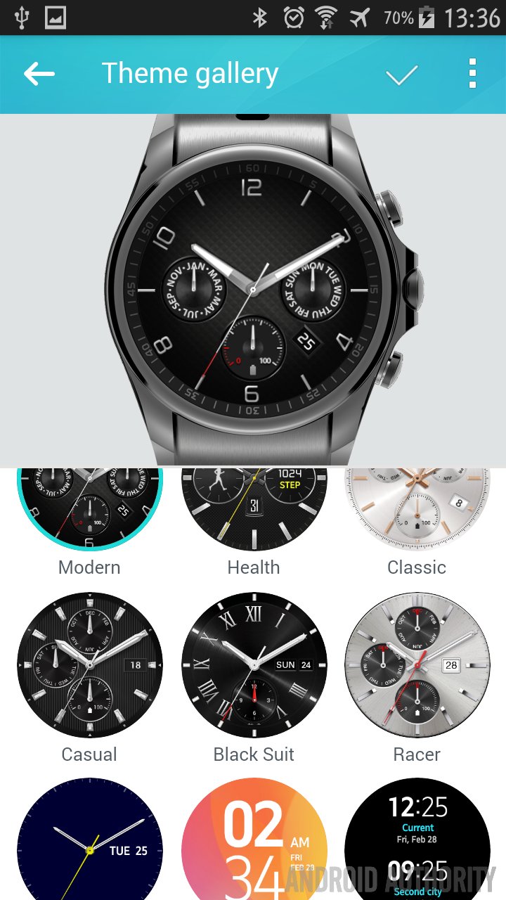 You can change the watch face design , of course, or the numeric design, or even the clock hands. You can save the finished theme for quick selection layer. Other features include the ability to send files on your smartphone to the watch, at least music or pictures. The few songs I transferred took a rather long amount of time to download to the Urbane LTE, which was a bit frustrating. I’m not sure if this process works faster on the Android Wear platform, in which case it would seemingly be an issue with WebOS’ file management. Take a look at the interface and some of the features: