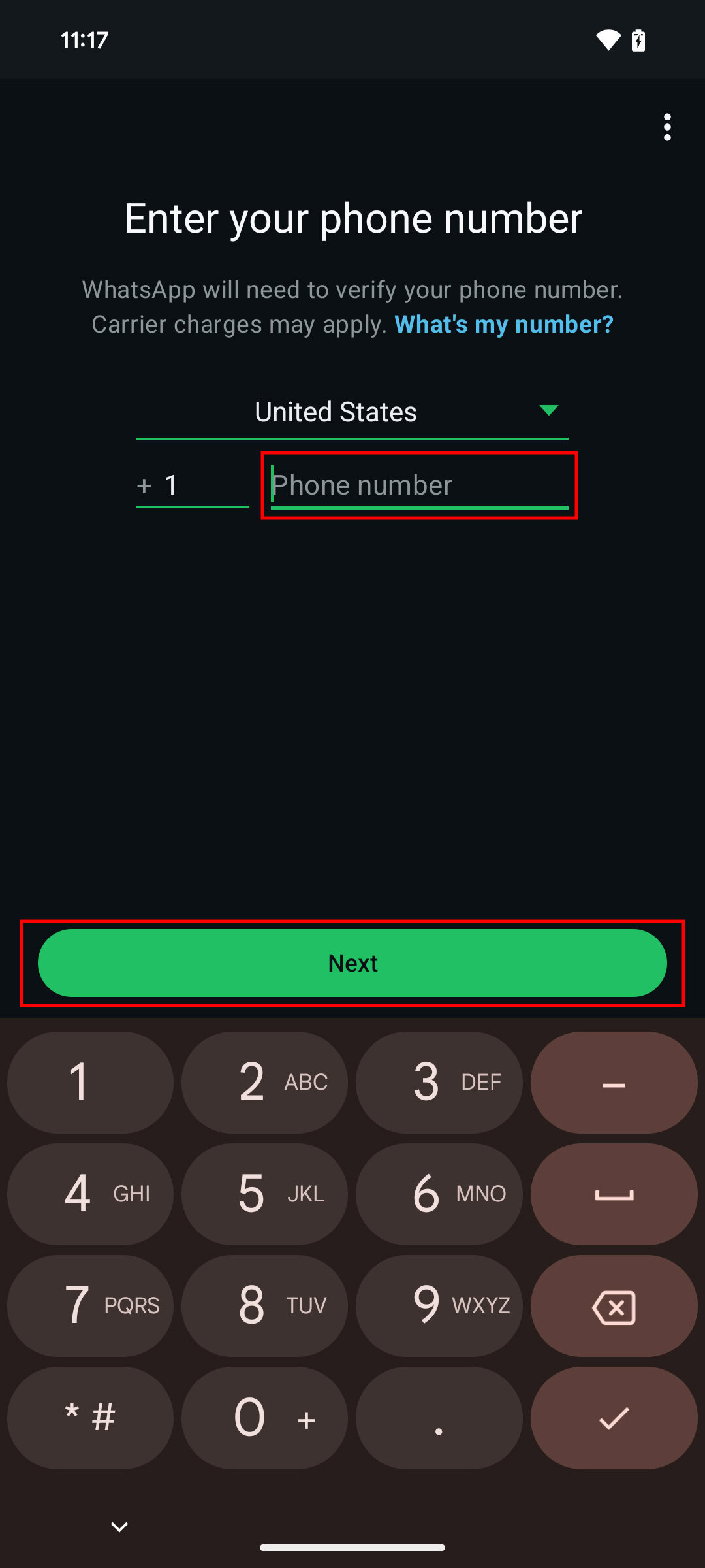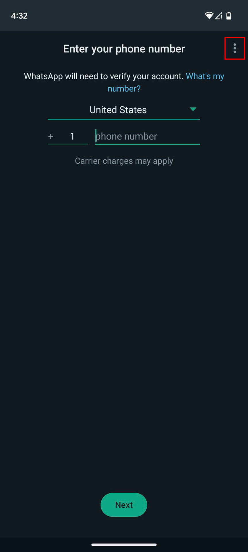 - You will be asked for your phone number. Don’t enter it. Instead, tap on the three-dot menu button.