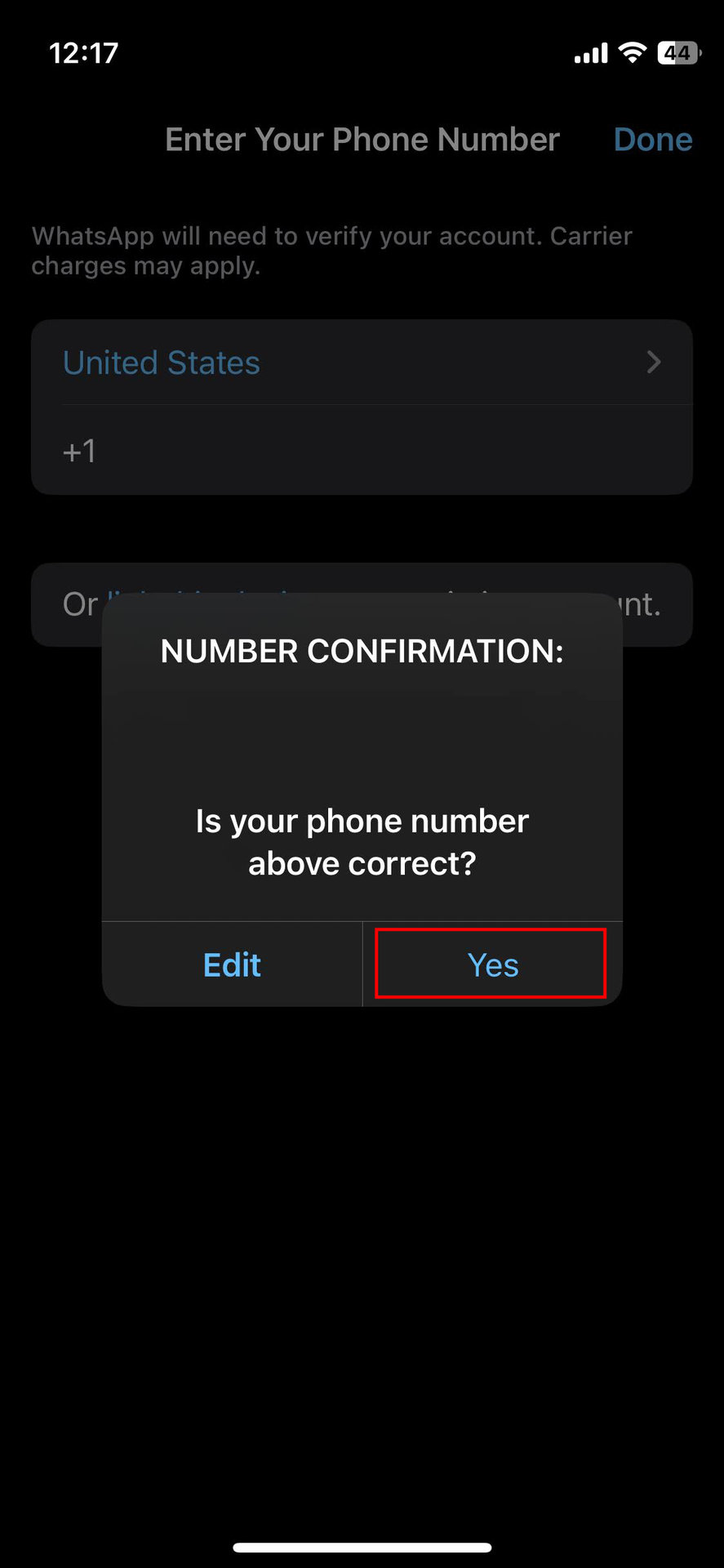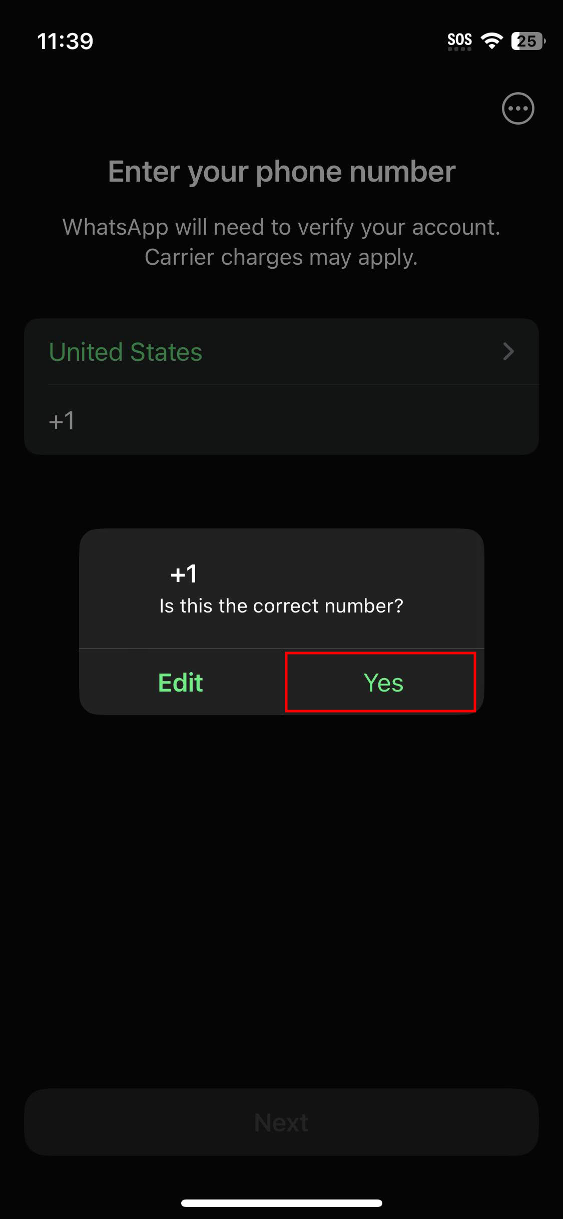 - Verify your number is correct and press Yes.