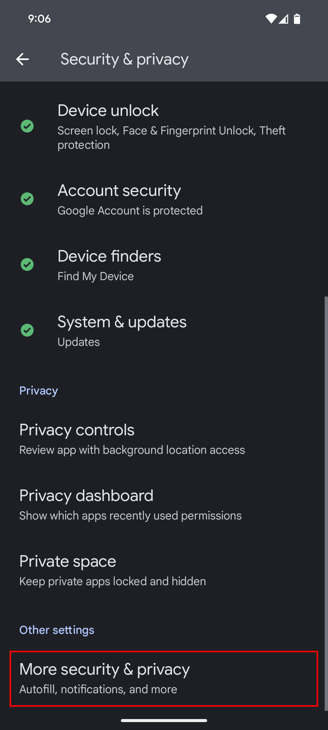 - Go to Security & privacy.