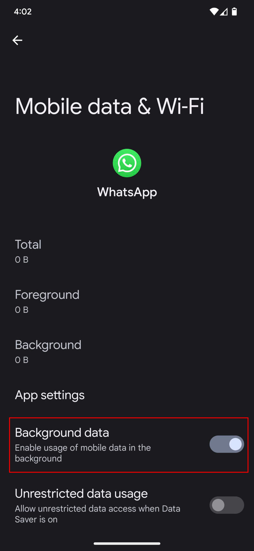 - You can also toggle Unrestricted data usage on. This gives the app complete data access even when in Data Saver mode.