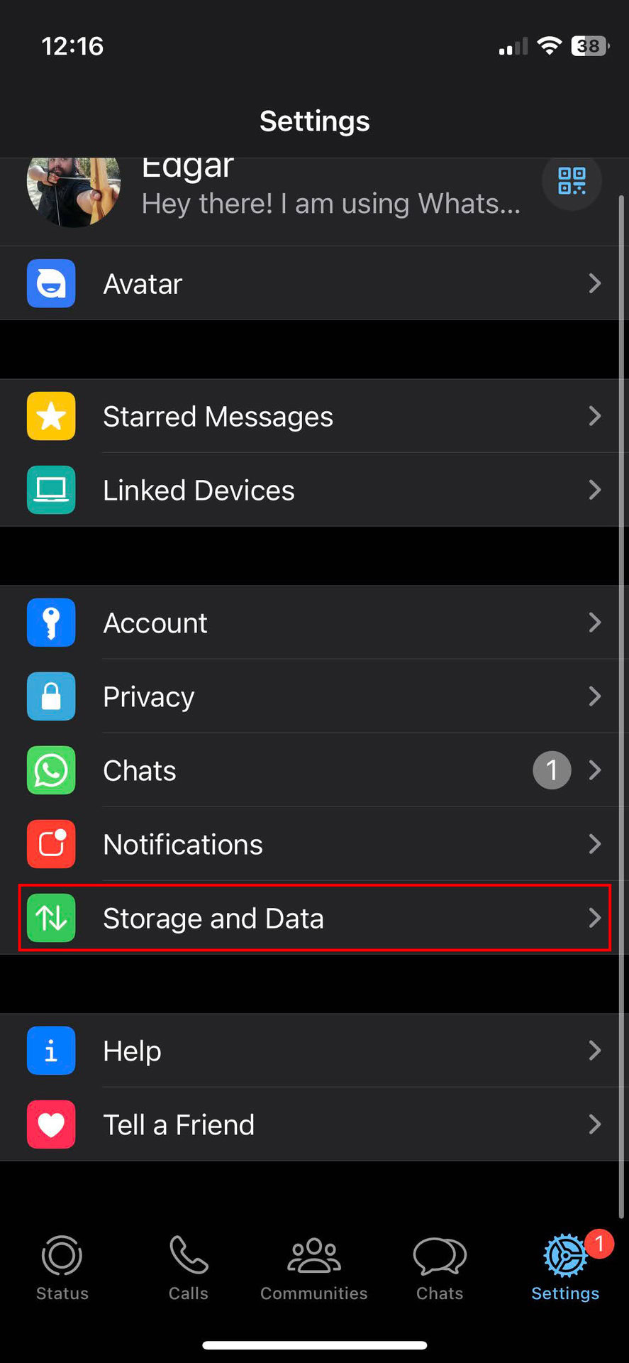 - Go into Storage and Data.