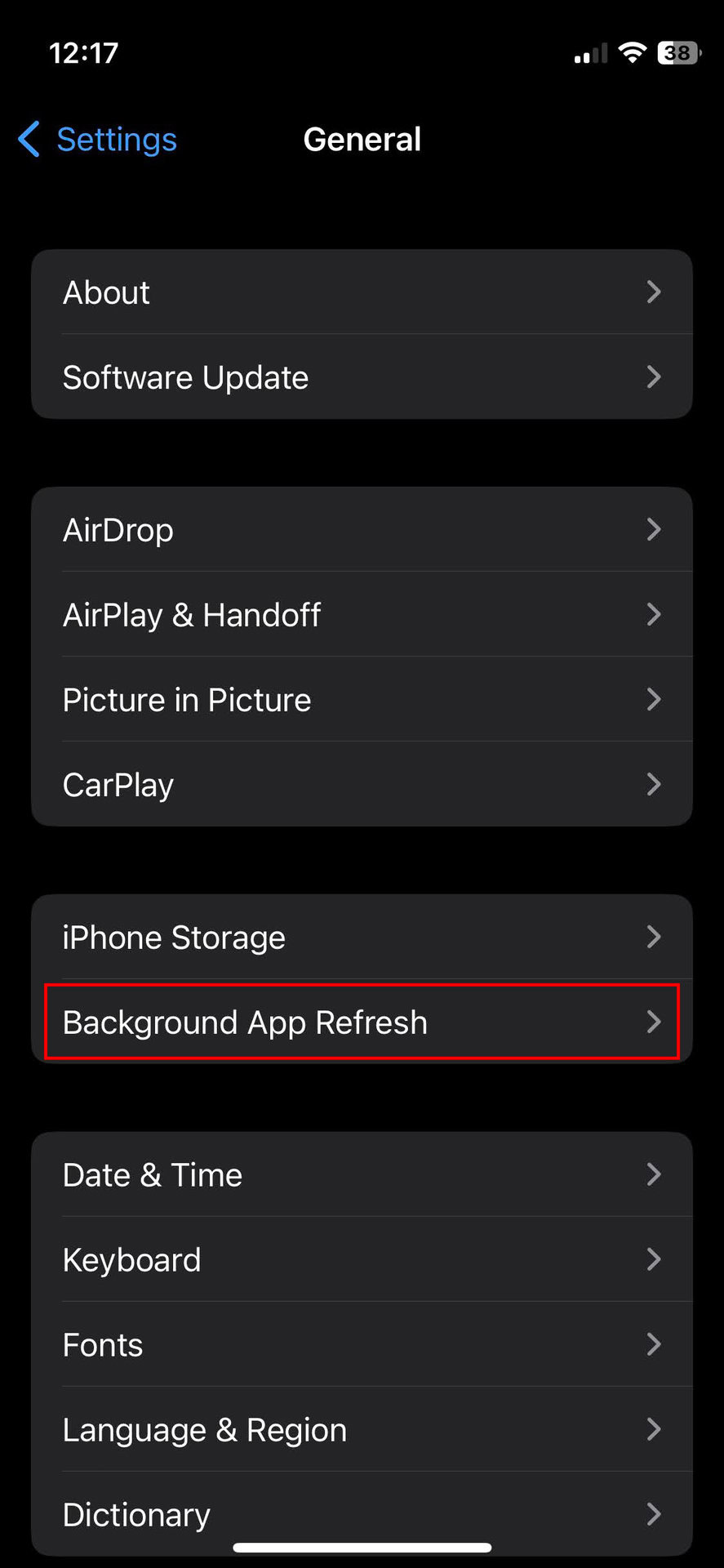 - Tap on Background App Refresh.