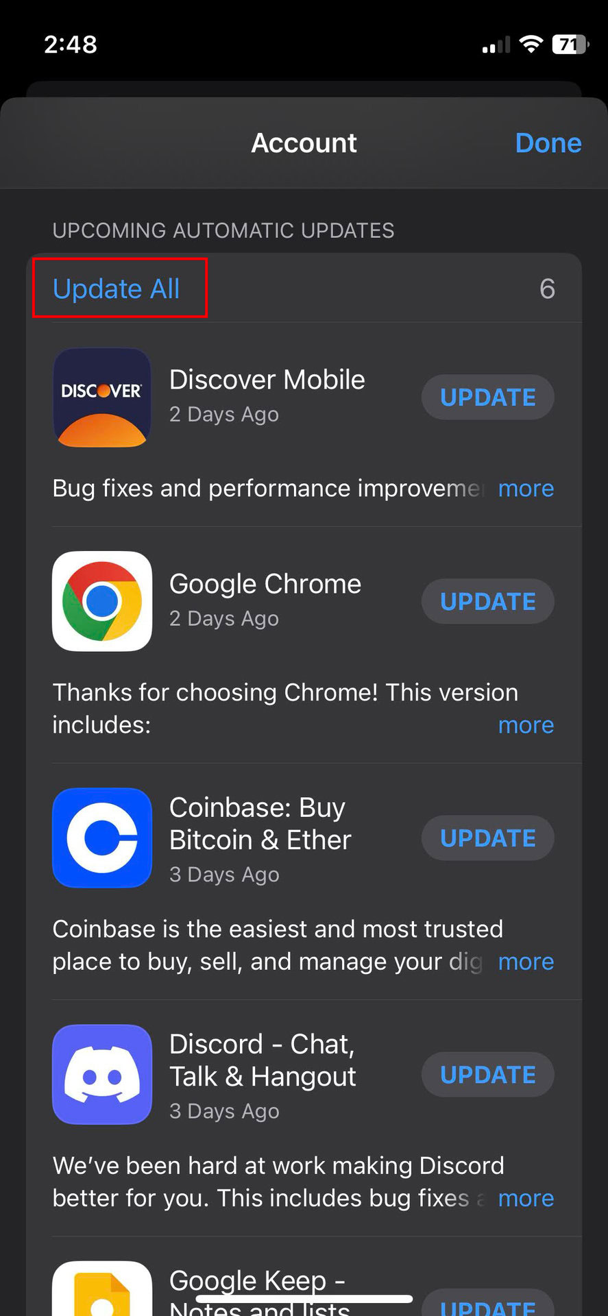 - Tap on Updates available.