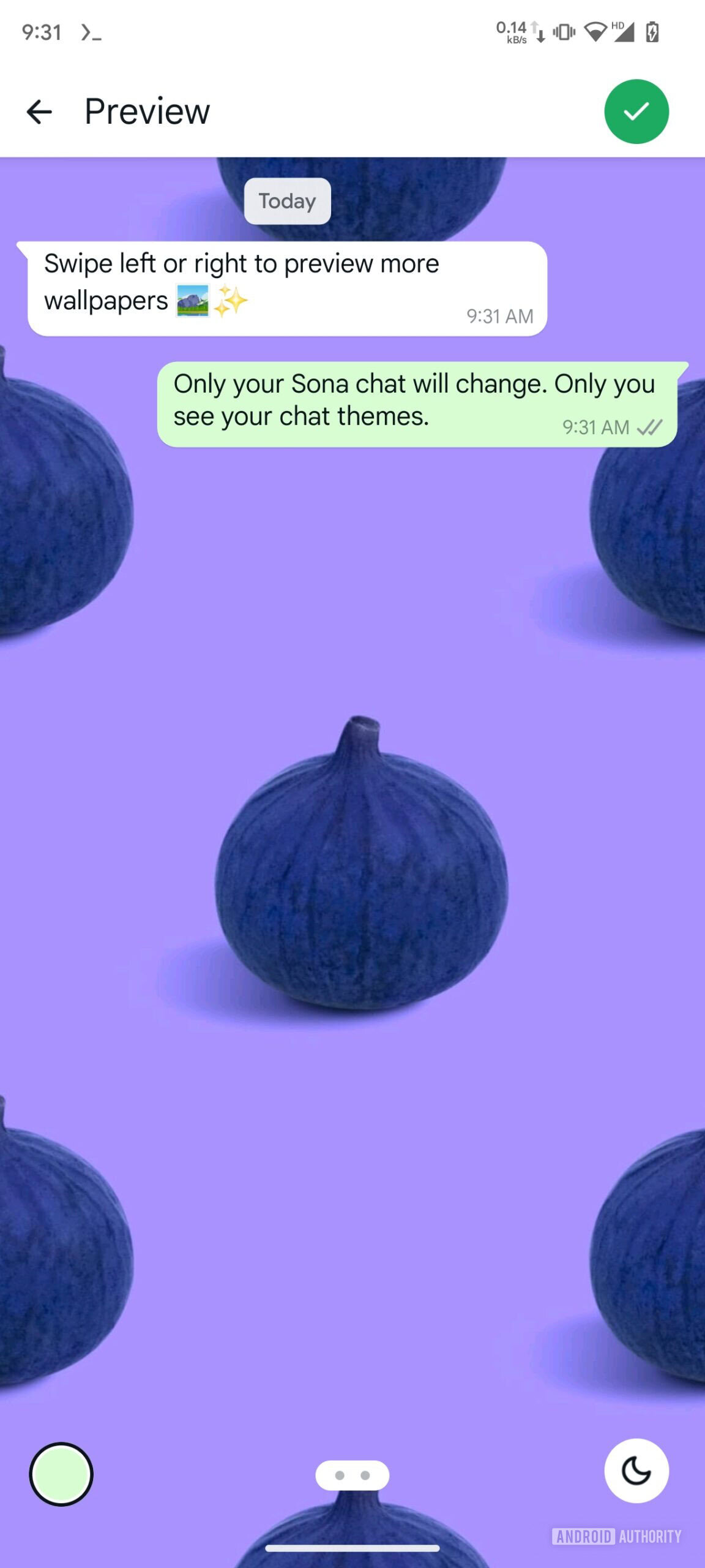 There will be a couple of presets to choose from, though we could activate only a few. You will be able to choose from a broader range of preset wallpapers, and the chat bubble will be accented to match it in the preset.