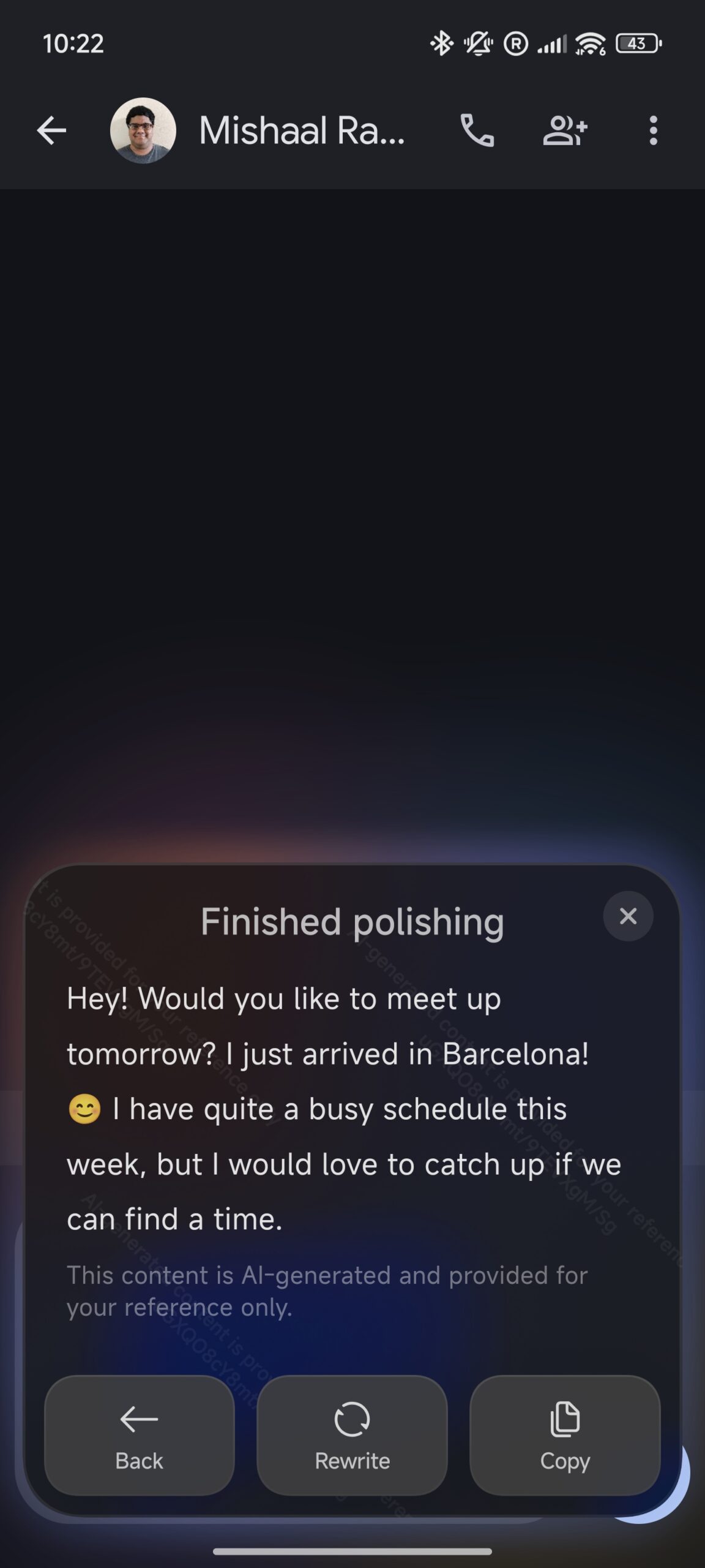 Samsung seems to be the only other smartphone company to have recognized the practical utility of this approach. In its upcoming One UI 7 release, the company no longer requires you to use its Samsung Keyboard app to take advantage of its AI writing features. Hopefully, other companies adopt the approach of Xiaomi and Samsung and make their AI writing tools available system-wide rather than only in first-party apps.