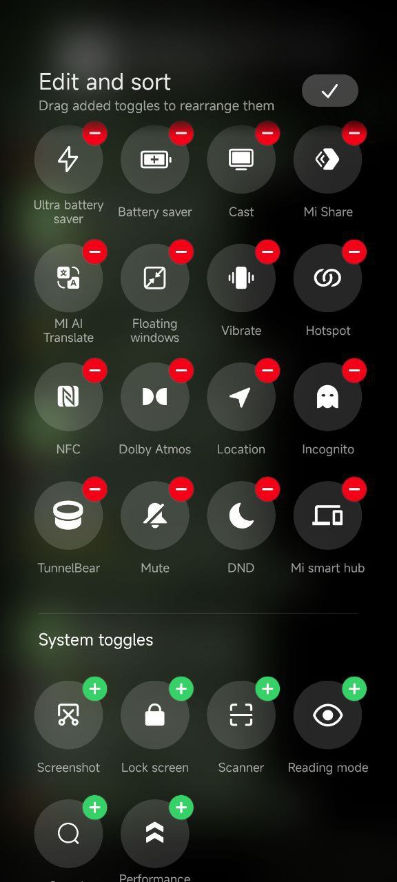 Starting off, we have screenshots of the quick settings toggles, called the Control Centre on MIUI/HyperOS.