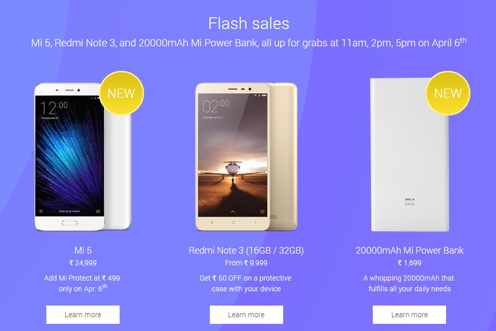 The Redmi Note 3 will be available from Rs 9.999, while the Mi Power Bank will be on sale for Rs. 1,699. Various bundles and other promos will also be available.