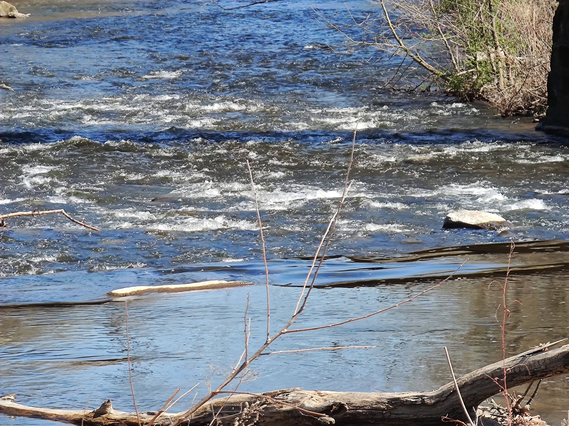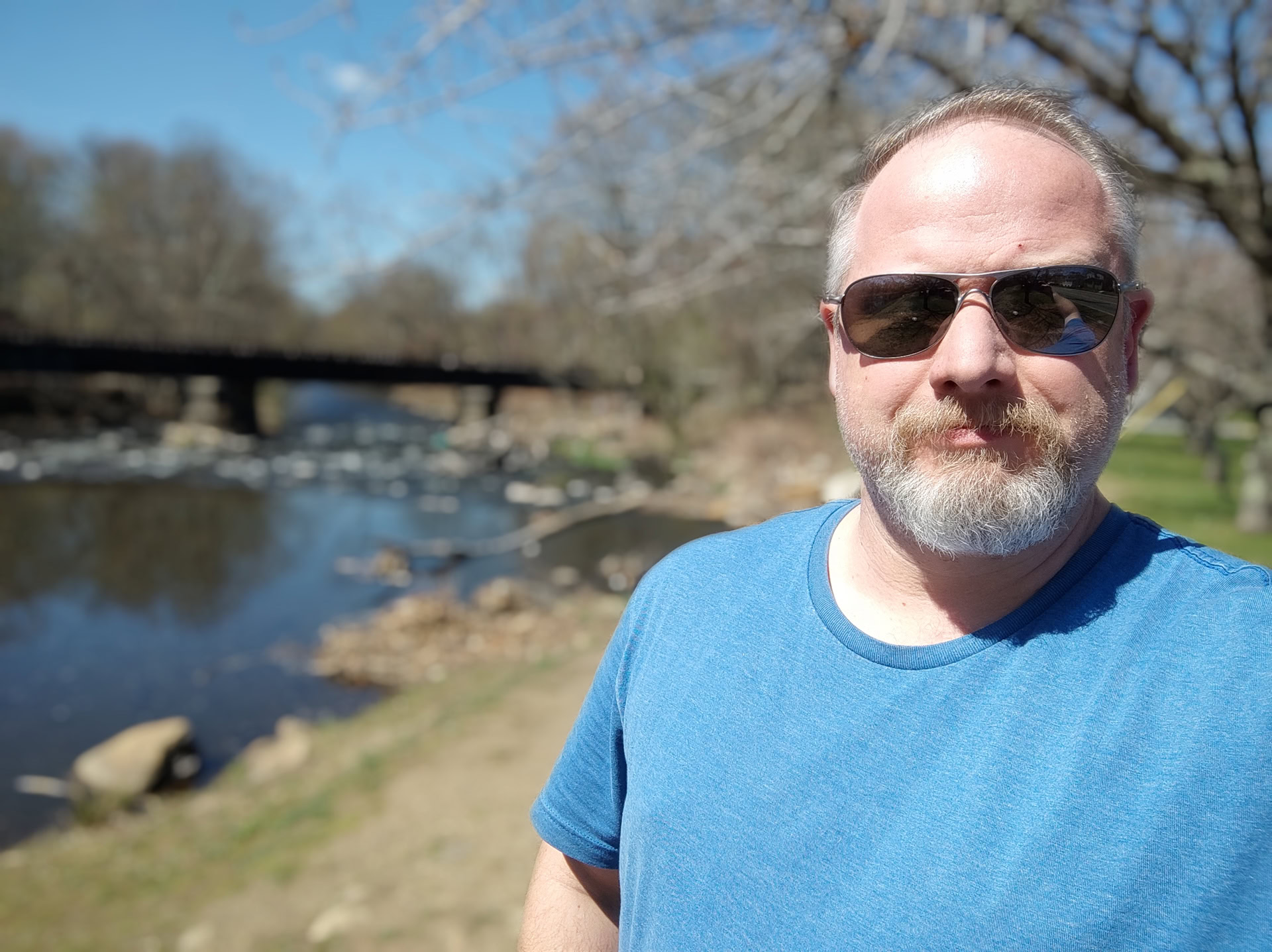 Last, here are two night mode comparisons shots. In each, the first is taken with the regular mode and the second is taken with the night mode. You can see the impact it has on the river scene, which is to say, it makes everything look unnaturally bright. There’s less of a difference in the shot of the building, though some details do stand out with night mode that aren’t visible without it.