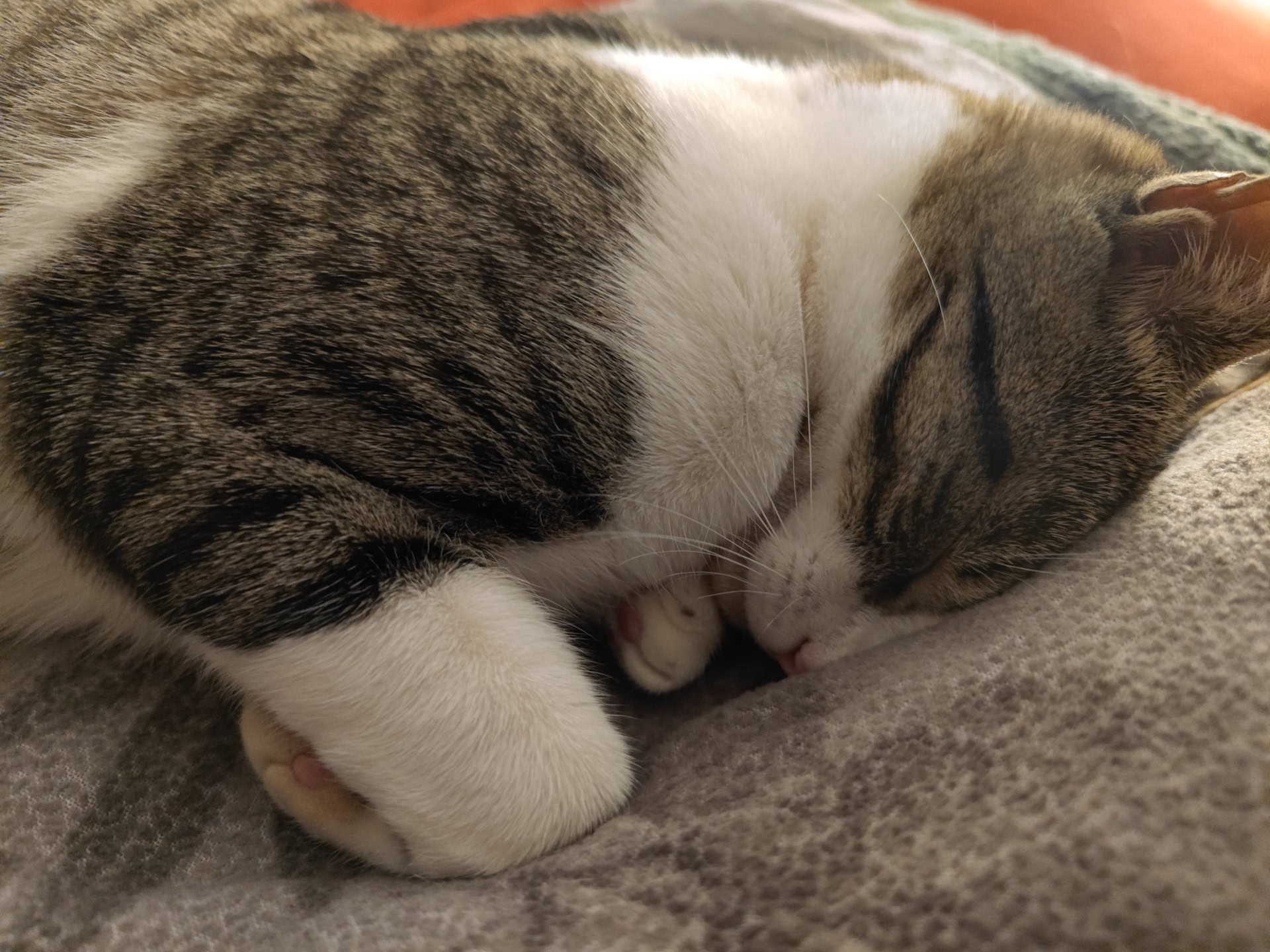 Low-light shooting delivered mixed results. Both of the images below were taken in low light settings and the camera automatically adapted to night mode. The Mi 11 Ultra has one of the largest sensors available on a modern smartphone (1/1.12-inches), which helps a lot. I like that the camera captured a lot of detail below the keyboard of the piano, including the bench, especially since the light source was bouncing off the white keyboard and the bench was nigh invisible. However, there’s plenty of grain in the image. Similarly, the cat photo’s longer exposure time led to far more light than was really there, and it’s a softer image than I’d prefer.