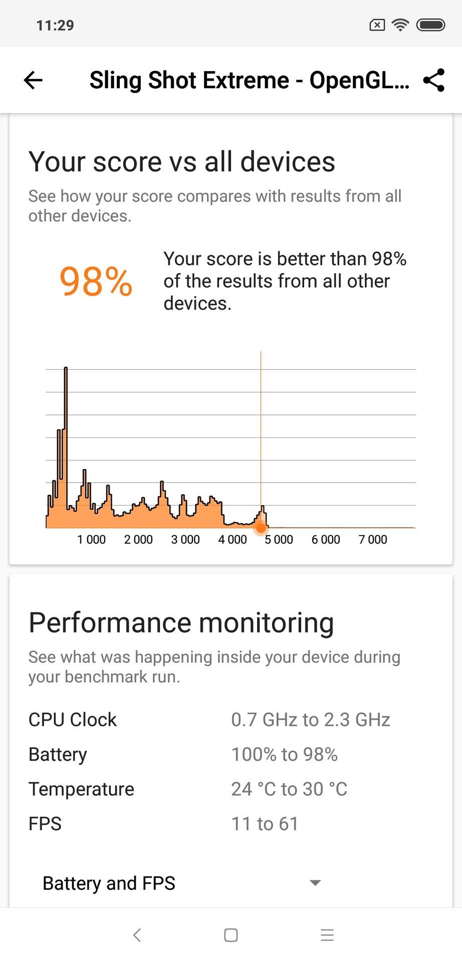 3DMark’s Sling Shot Extreme (OpenGL ES 3.1) test delivered an overall score of 4,612, which is an improvement over the Mi 8 (4,233) and POCOphone F1 (4,216), but below the OnePlus 6T (4,697).