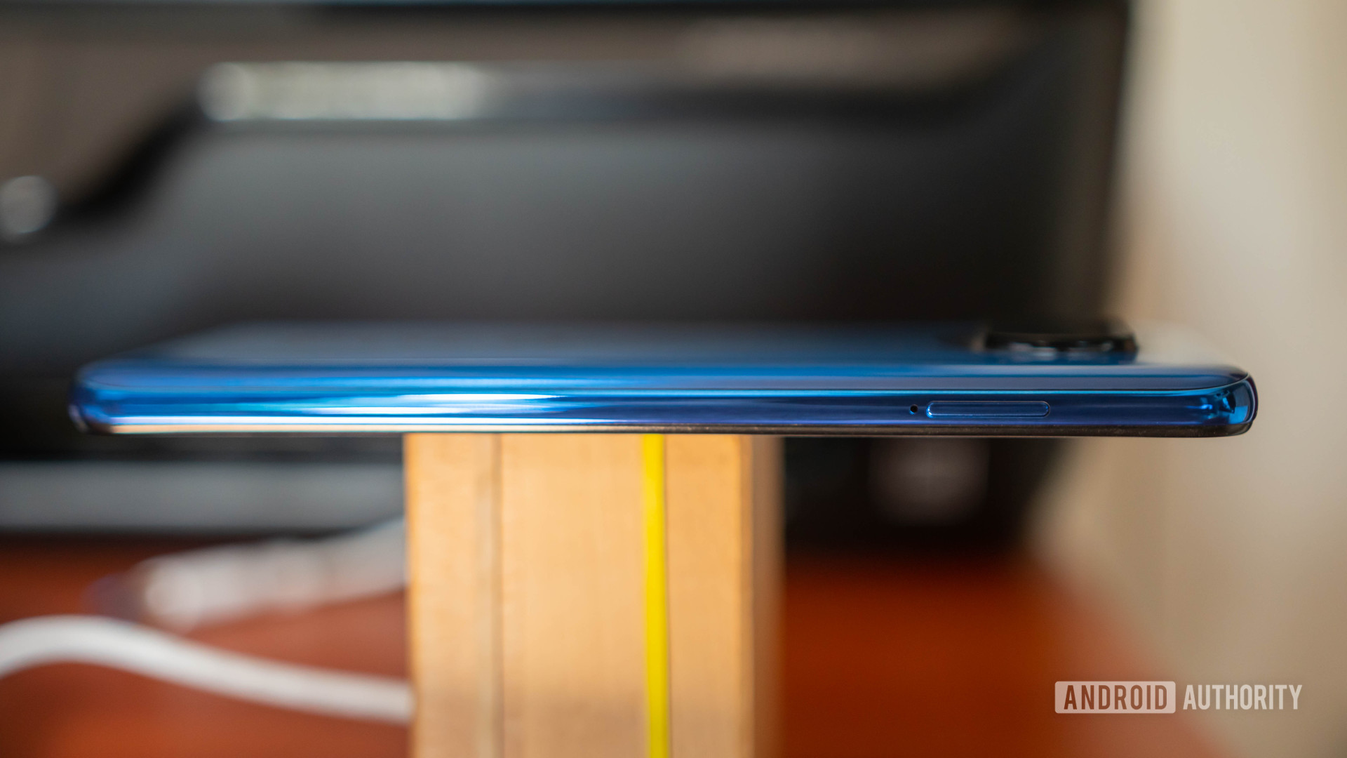 The rear panel has “POCO” printed in large letters across the back. The circular rear camera bump has had its top and bottom shaved off to create a distinctive shape. There’s a metallic accent around the camera bump to make it stand out, too. The colors – Shadow Gray and Cobalt Blue – complement the strong design elements so that it’s not so in-your-face. To top it off, there’s a big stripe going across the back