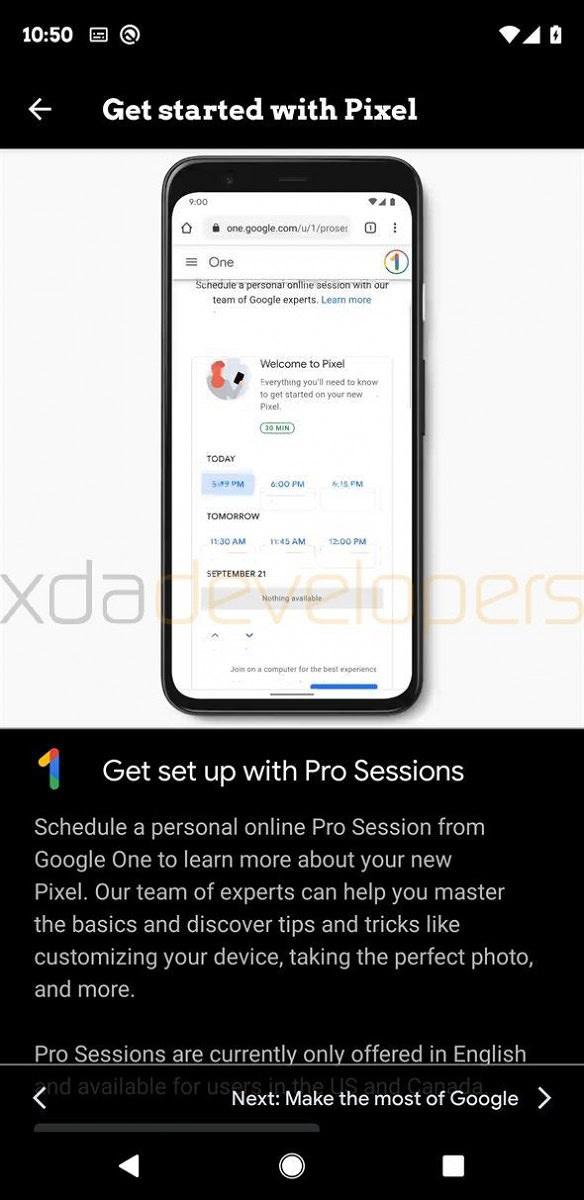 The Pixel Tips app also reveals the ability to set up a “Pro Session” in Google One. Sign up for a session and you can expect Google’s experts to walk you through the Pixel phone and its features. XDA notes that these sessions are only available in English in North America. Check out the Social Share and Pro Session screenshots below, courtesy of the outlet.