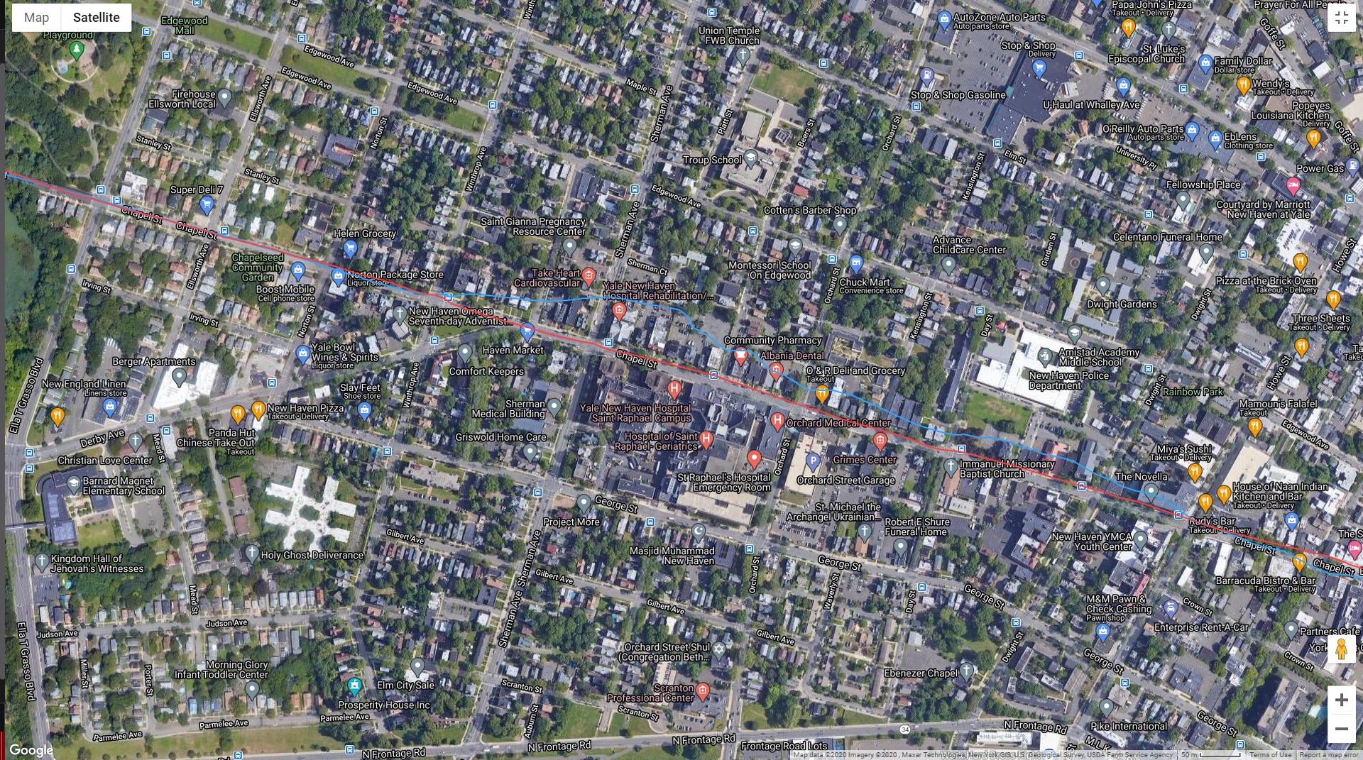 GPS tracking is up next. Considering this is a new feature of the watch (and for Zepp in general), a lot is riding on this one. Unfortunately, tracking isn’t incredibly accurate. For this Zepp Z review, I put it up against the onboard GPS/GLONASS tracking of the Fitbit Charge 4. In the maps below, you can see that both trackers had me going through parks and buildings a few times, although the Zepp Z was the worst offender. See for yourself in the images below. Zepp Z is the blue line, Fitbit Charge 4 is the red line: